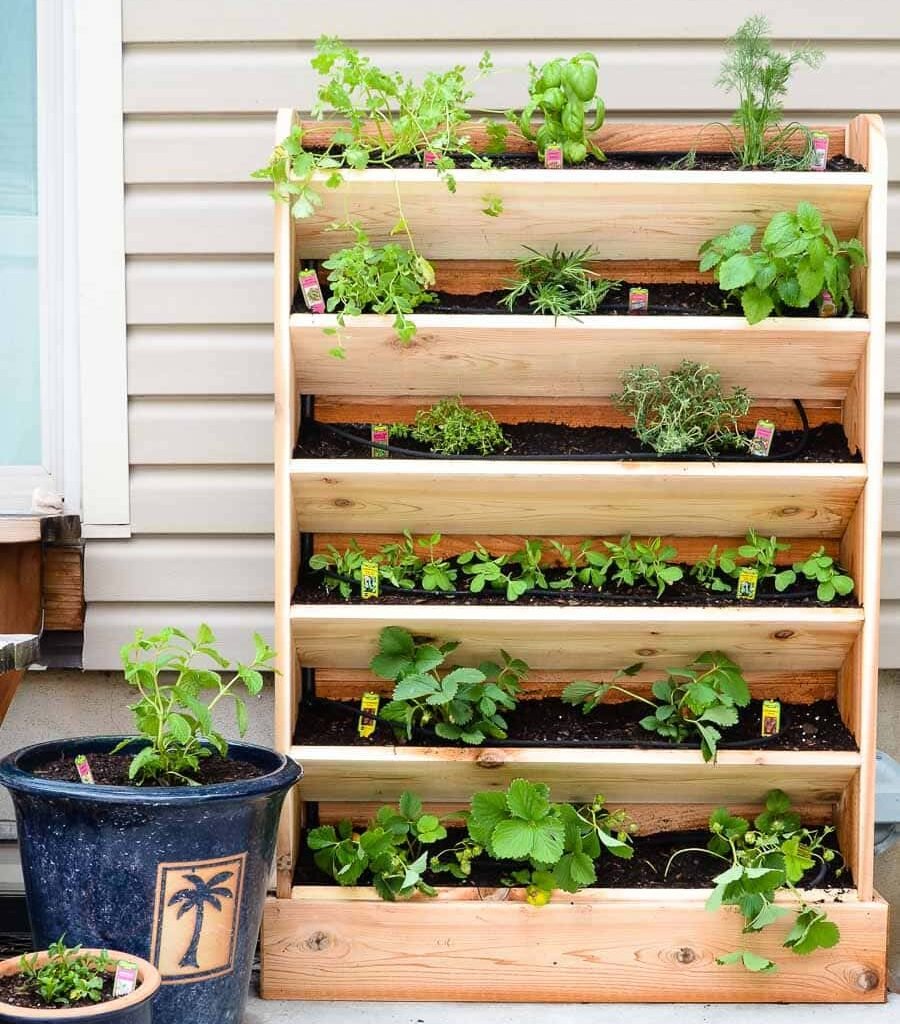 You don’t need a professional setup to make your own DIY vertical vegetable garden with an automatic watering system. Here’s your materials checklist: