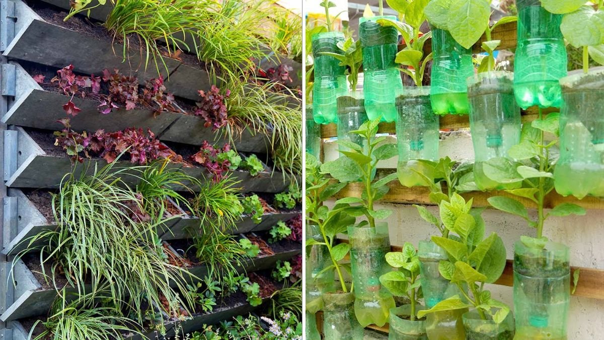 If you prefer a sleeker look, use PVC pipes or modular vertical garden planters — both are lightweight and easy to assemble.