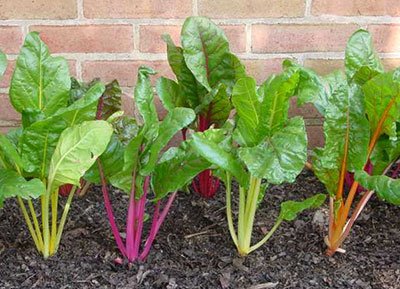 - Ruby Red (Rhubarb Chard): Features deep red stems and veins with dark green leaves — a beautiful contrast in the garden.